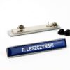 Identyfikator imienny Policji na agrafkę zgodny z art. 12 ustawy z dnia 6 kwietnia 1990 r. o Policji (Dz.U. z 2019 r. poz. 161, z późn. zm.) oraz § 28 rozporządzenia Ministra Spraw Wewnętrznych i Administracji z dnia 5 kwietnia 2019 r. zmieniającego rozporządzenie w sprawie umundurowania policjantów (Dz.U. z 2019 r. poz. 651).