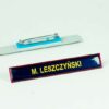 Kolor identyfikatora: tło w kolorze ciemno granatowym, ramka amarantowym.
