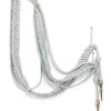Sznur galowy oficerski Służby Więziennej składa się z warkocza splątanego z trzech plecionek, pojedynczego sznura oraz z pojedynczego sznura w kształcie pętli przewieszonego przez ramię pod naramiennikiem koloru srebrnego. Warkocz i plecionka od góry łączy zapinka z taśmy poliamidowej która służy do zapięcia pod naramiennik munduru. W dolnej części warkocz i plecionka zakończone są metalową niklowaną końcówką i pętelką do zapięcia na guziku munduru. Nasze sznury galowe dla policji charakteryzują się dużą odpornością na szkodliwe czynniki oraz trwałością, ponieważ wykonany jest z najwyższej jakości materiałów.